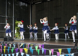 Das Bühnenprogramm war reich an Vielfältigkeit und multikulturellen Tänzen, die von unseren zwei Tanzpädagogen vorbereitet wurden. Die Volkstanzgruppe Kalinka unter der Leitung von Edvard Akinshyn hat verschiedene Tänze aus fünf Ländern vorbereitet: Israel, Russland, Deutschland, Ukraine und Italien. Zum begeisterten Applaus der Besucher, die zudem fröhlich mitgesungen und -getanzt haben, gab es eine Deutsche Polka als Abschlusspunkt von diesem Auftritt. Im zweiten Teil des Bühnenprogramms begeisterten verschiedene Gruppen mit Beteiligung ukrainischer Flüchtlingskinder unter der gemeinsamen Leitung der Tanzpädagogin und Absolventin der berühmten Palluca Hochschule, Katharina Fixel, die Zuschauer mit modernem Tanz. Die Zuschauer haben die Tänze mit Freude, Tränen und einem lauten Applaus aufgenommen. Der Dank der Eltern war für uns die Beste Anerkennung unseres Bemühens, den geflüchteten Kindern das Gefühl zu vermitteln, dass Sie von Anfang an wie selbstverständlich angenommen und bei uns angekommen sind, was nach unserer jahrzehntelangen Erfahrung in der Integrationsarbeit eines der wichtigsten Faktoren darstellt.